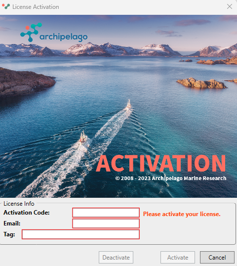 - Enter the Activation Code, your email address and provided Tag.