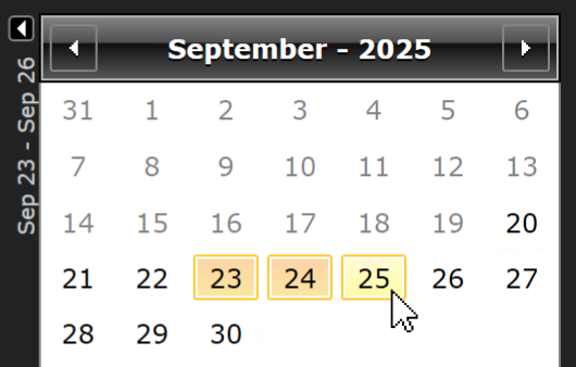 - Click and hold down the left mouse button to highlight the days you want to display.