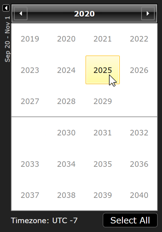 - To zoom back in (and reduce the date range), click on the current month/year.
